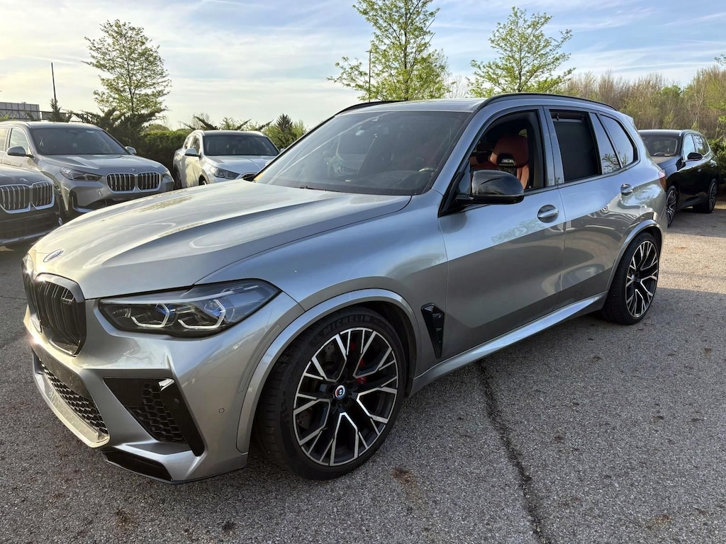 Donington Gray Metallic 2023 BMW X5 M AWD 8-Speed Automatic Sport 4.4L V8 DOHC 32V TwinPower Turbo 5YMJU0C02P9N91014, 23,790 mi.​, Competition Package, Competition Package (7MA), Connected Package Pro, Executive Package, Extended Shadowline Trim, Front & Rear Heated Seats, Front Massaging Seats, Front Ventilated Seats, Full Leather Merino/Alcantara Upholstery, Heated & Cooled Cupholders, M Competition Package, M Seat Belts, M Shadowline Lights, M Sport Exhaust System, Navigation System, Rear Manual Side Window Shades, Remote Engine Start, Soft-Close Automatic Doors, Wheels: 21" x 10.5" Fr & 22" x 11.5" Rr Bi-Color.