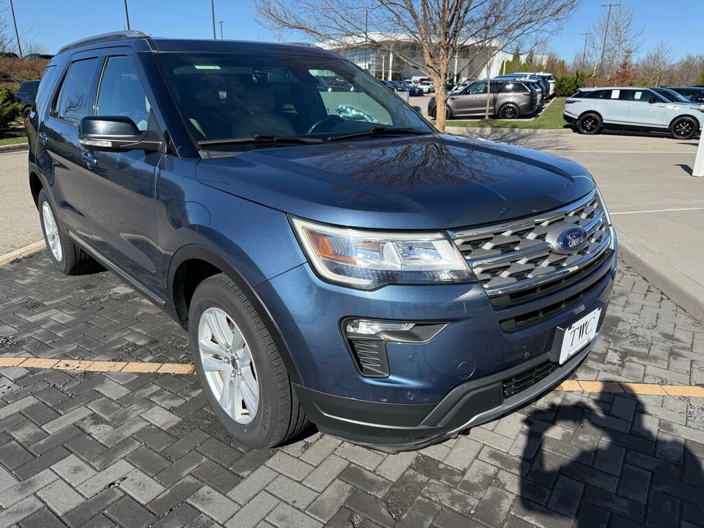 Blue Metallic 2018 Ford Explorer XLT 4WD 6-Speed Automatic with Select-Shift 3.5L 6-Cylinder SMPI DOHC 4WD, 2 Driver Configurable 4.2" Color LCD Displays, Adaptive Cruise Control & Fwd Collision Warning, Auto High-Beam Headlights, Auto-Dimming Rear-View Mirror, BLIS Blind Spot Information System, Comfort Package, Driver Connect Package, Dual-Zone Electronic Automatic Temperature Ctrl, Equipment Group 202A, Ford Safe & Smart Package, Forward Sensing System, Heated Steering Wheel, Lane-Keeping System, Leather Heated Bucket Seats, LED Fog Lamps, Power & Heated Glass Sideview Mirrors, Power Liftgate, Radio: AM/FM Stereo w/7 Speakers, Rain-Sensing Wipers (Front Only), Rear Bumper Step Pad, Remote Start System, SYNC 3 Communications & Entertainment System, SYNC Connect.